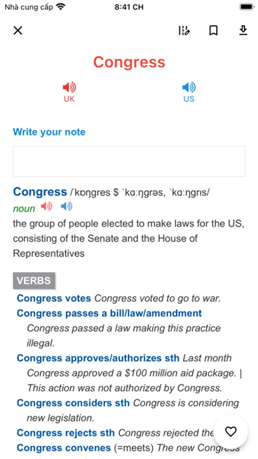 • Pop-up definition and real voice spoken pronunciation for every word in the dictionary.