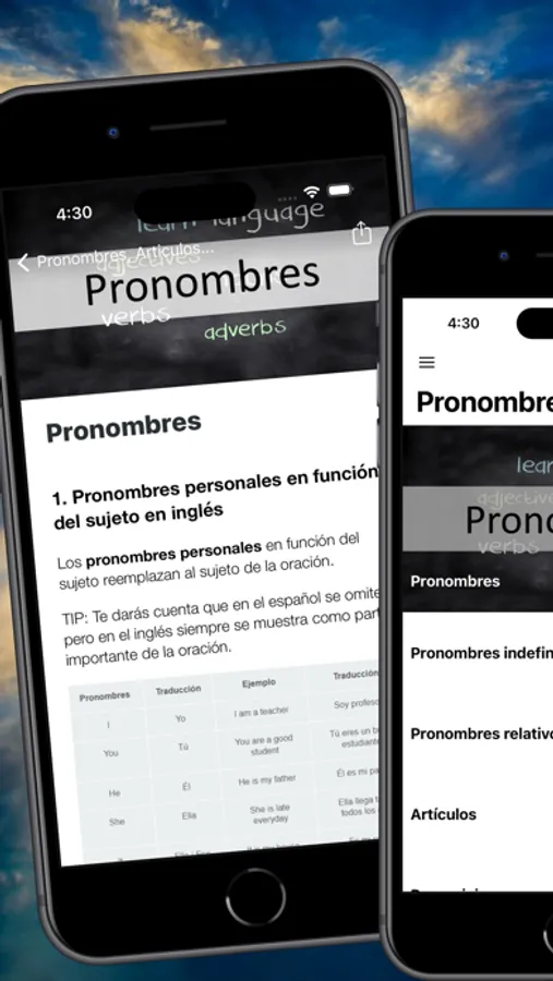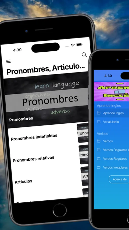 La aplicación de aprende inglés tiene una sería una información educativa que ayuda a los estudiantes y toda aquella persona autodidacta a mejorar su comprensión y uso de los verbos regulares e irregulares, así como de los diferentes tiempos verbales en inglés.