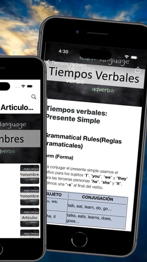 La aplicación también tiene gramática que explique las reglas de formación de los diferentes tiempos verbales, lo que sería útil para aquellos estudiantes que necesiten una explicación más detallada.