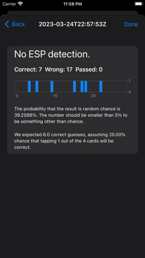 But that's not all - ESP Pro also enables statistical analysis of your game sessions, so you can see just how accurate your intuition really is. With this feature, you can determine whether your success is due to true ESP abilities or simply luck.