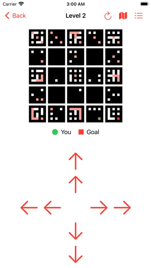 In "Maze 4D," you navigate the maze using the standard up, down, left, and right buttons, along with additional up, down, left, and right buttons. Each of the eight buttons corresponds to movement in the positive and negative directions along the X, Y, Z, and W axes. On the screen, 2-dimensional cross-sections of the 4-dimensional maze are arranged in the Z and W-axis directions. Aim for the goal by skillfully moving not only in the X and Y directions but also in the Z and W directions.