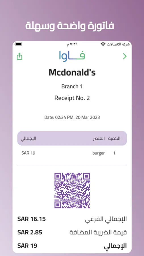 - حفظ الفواتير ومشاركتها مع الاخرين.