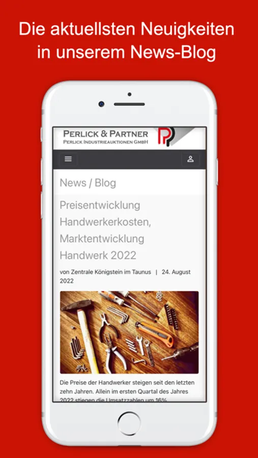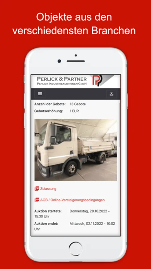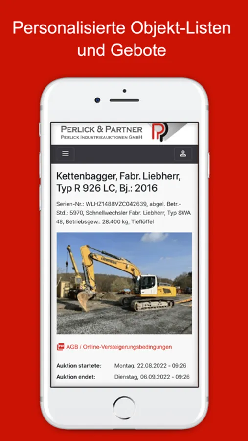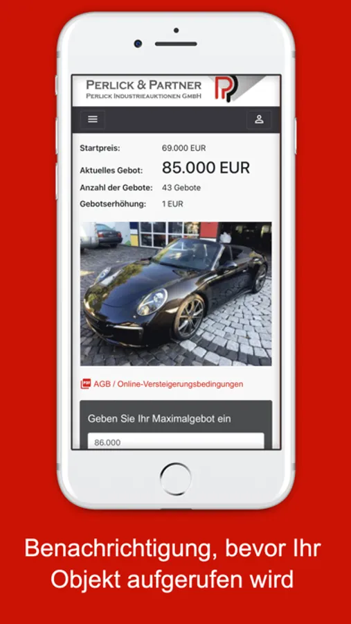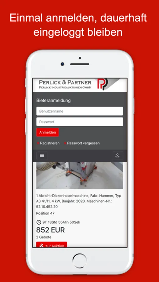 Die Perlick-App gibt Ihnen stets den Überblick über unsere aktuellen Auktionen sowie Ihre personalisierten Objekt-Listen und Gebote. Besonders für unsere Zeit-Auktionen ist die App optimiert: Sie erhalten eine Benachrichtigung, bevor Ihr Objekt aufgerufen wird und können direkt in der App live bieten und auf Überbietungen reagieren. So verpassen Sie keine Gelegenheit, Ihr Wunschobjekt zu ersteigern. Die einmalige Anmeldung in der App gewährleistet Ihnen eine dauerhafte Anmeldung.
