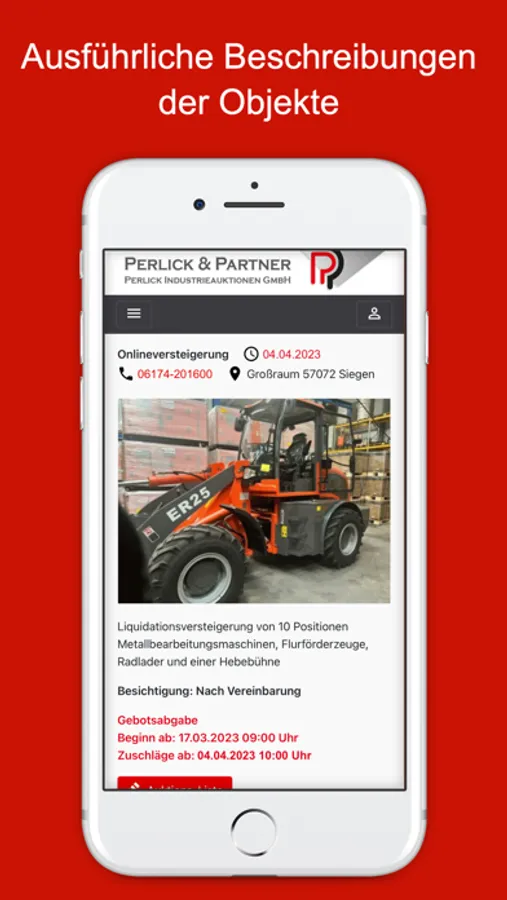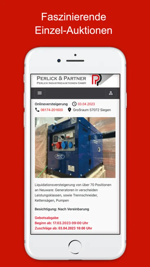 Die Gesellschaft Perlick Industrieauktionen GmbH bieten nun in zweiter Generation mit über 33-jähriger Erfahrung ein umfassendes Dienstleistungspaket für Insolvenzverwalter und Rechtsanwälte, Banken, Leasinggesellschaften und Unternehmen.