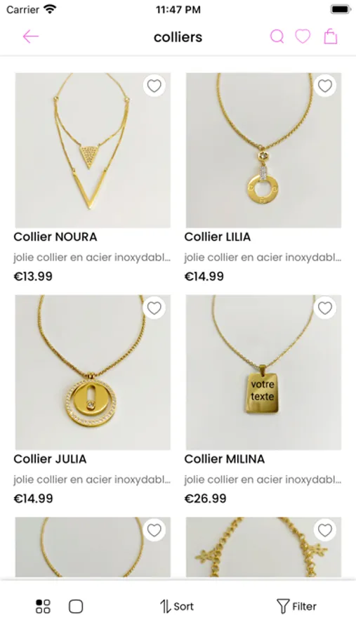 Acheter des bijoux en ligne n'a jamais été aussi simple et agréable. Parcourez une énorme collection de bagues, boucles d'oreilles, colliers et bracelets magnifiques, abordables et bon marché, de différents styles et matériaux. Ajoutez vos bijoux préférés à la liste de souhaits et profitez d'importantes remises sur les achats. Achetez ce qui vient d'arriver directement depuis votre téléphone, avec des centaines de nouveaux produits qui arrivent chaque semaine, vous trouverez des boucles d'oreilles pour femmes ou des bagues pour femmes abordables au bout de vos doigts.