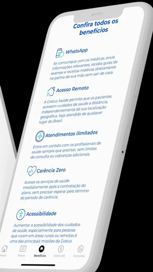 Com o app da Gratus você poderá acessar nossa plataforma para falar com médicos, consultar e contratar planos em mais.