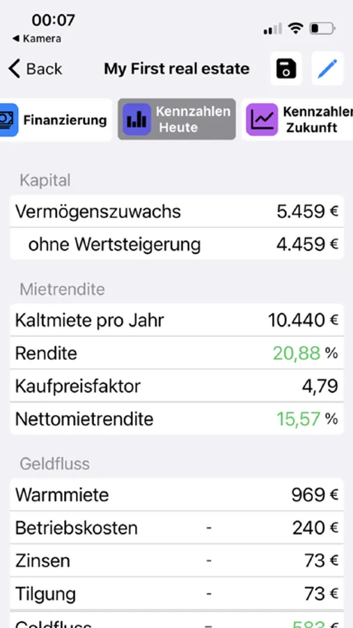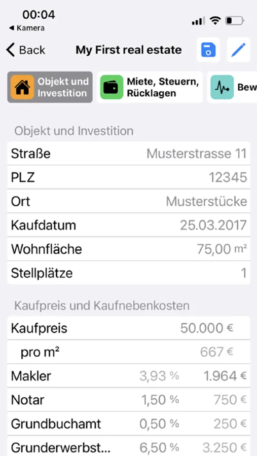 Basic data: purchase price, additional purchase costs, investments, etc.