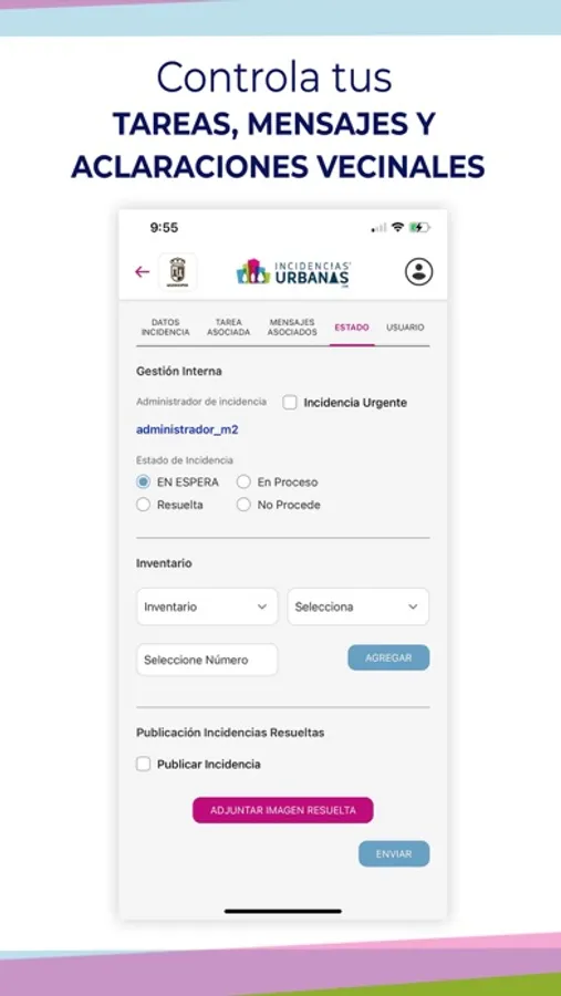 También subir fotografías de incidencias resueltas, o enviar una nueva incidencia.