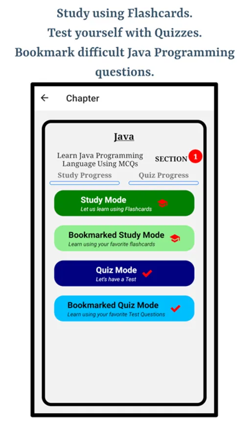 This app is a great resource to learn about Java Programming Language. The app is engineered to make users perfect understanding common Java Programming Language questions by studying for a very short amount of time. Audio functionality and bookmarking is available throughout the app on chapter, section, study mode and quiz modes.