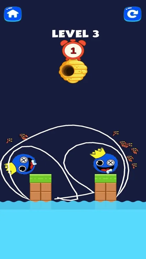 Save My Friend Rainbow Banban: draw save puzzle is a game to rescue the Blue Monster from the siege of mutant bees. You draw the line with your fingers to create walls that protect the rainbow monster from attacks by bees in the hive. You need to draw to save monster on the painted wall for 10 seconds during the attack of the mutant bee, hold on and you will win the game. This is an addictive game to train your brain. Moreover, Rainbow Monster: draw save puzzle is one of the most exciting save monster games that help you to challenge your mind.