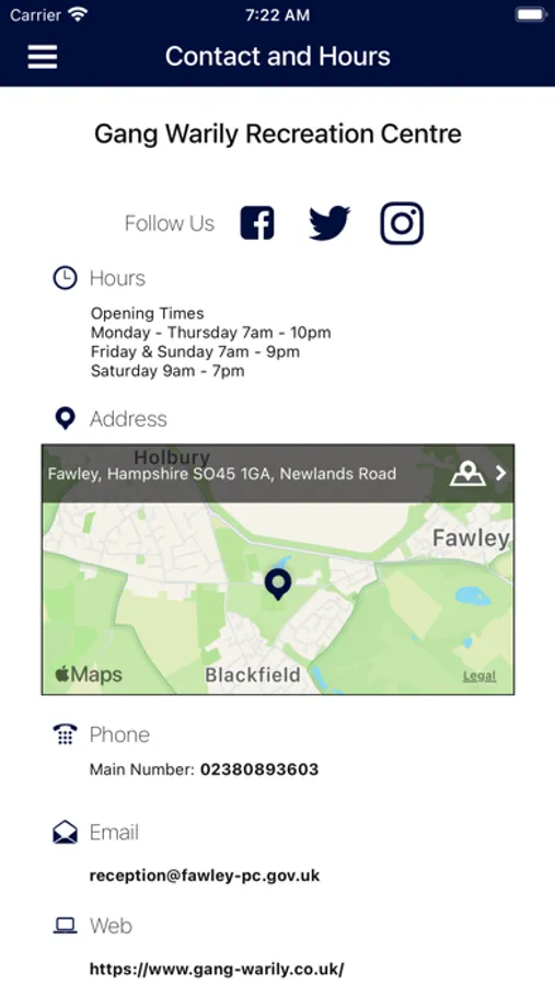 Gang Warily is a Recreation Centre located in the heart of Fawley Parish. Owned and operated by Fawley Parish Council, our facilities include; a four court sports hall, fully equipped fitness suite with studio, three artificial sports pitches, one full sized grass pitch and a fishing pond. Our helpful instructors can provide personal programes and training, and we also offer a good variety of fitness classes. Use this app to manage your membership, book out facilties, and sign up to classes.