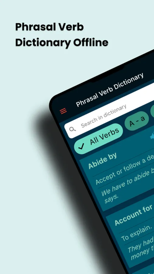 Phrasal Verb Dictionary is an offline application for learning English phrasal verbs and testing yourself with a quiz.