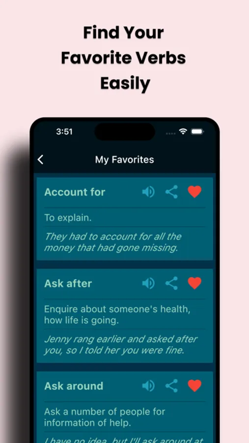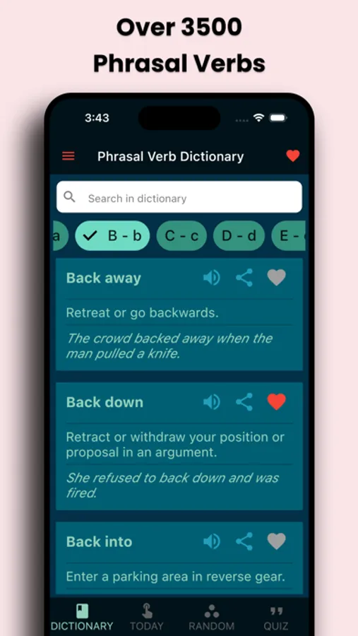 • Also, you can add phrasal verbs to your Favorite list, you can check them anytime