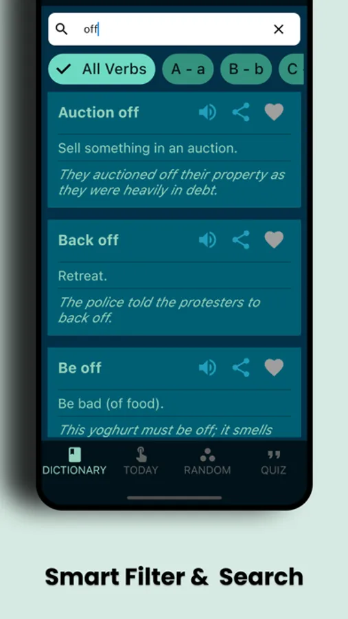 • Over 3000 English phrasal verbs with meaning, usages, and pronunciations