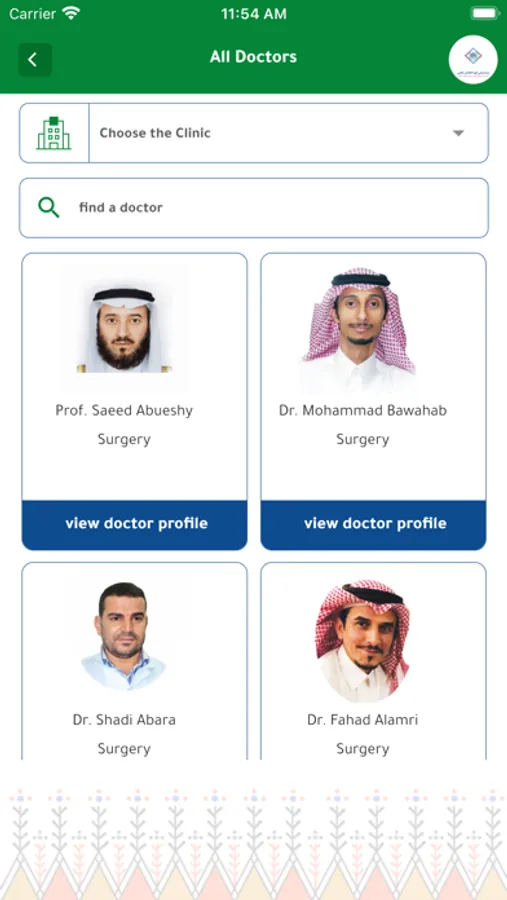 - الإطلاع على قائمة الأطباء وإمكانية حجز موعد مع الطبيب المعالج