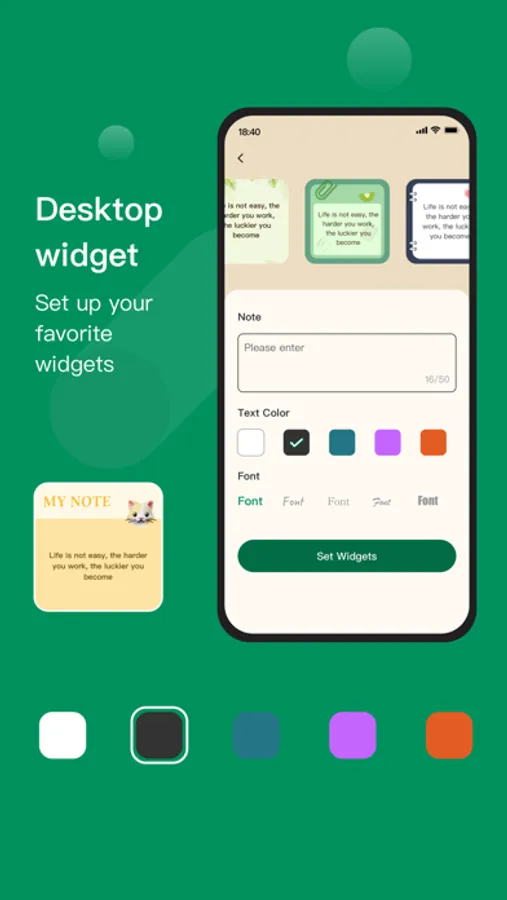 In order to meet the needs of users' daily learning and recording, we provide desktop components, which users can write language words and sentences on and put them on the mobile desktop for convenient review at any time. Or you can record important events as reminders. It contains a variety of editing methods, users can match and combine their own satisfactory style.