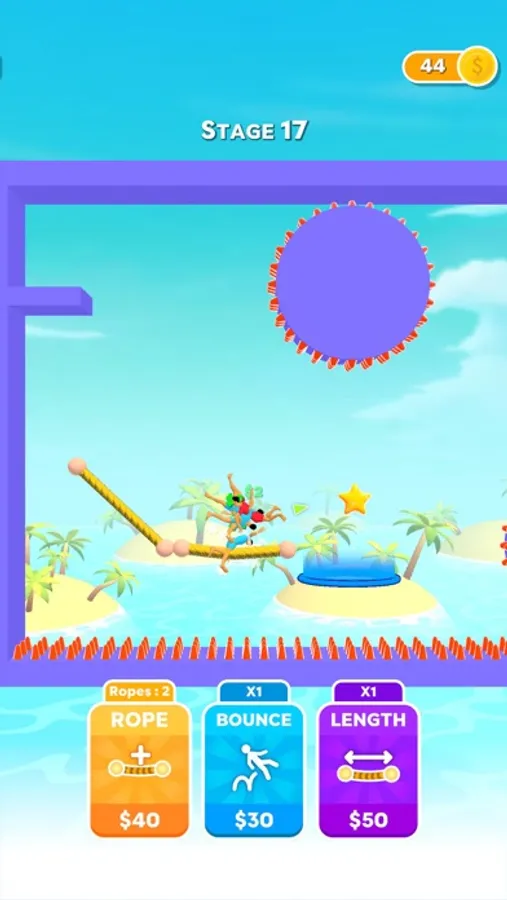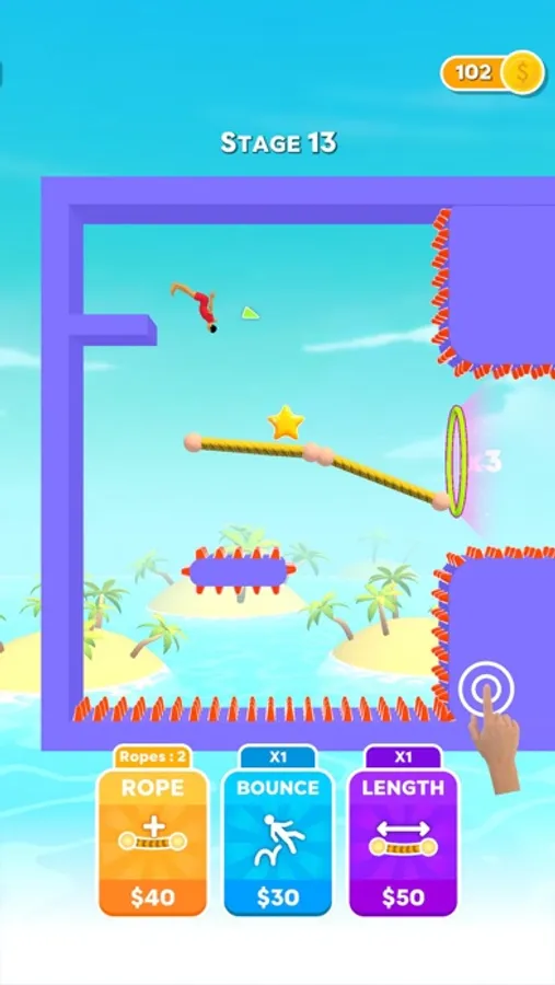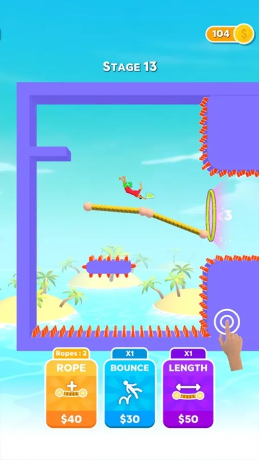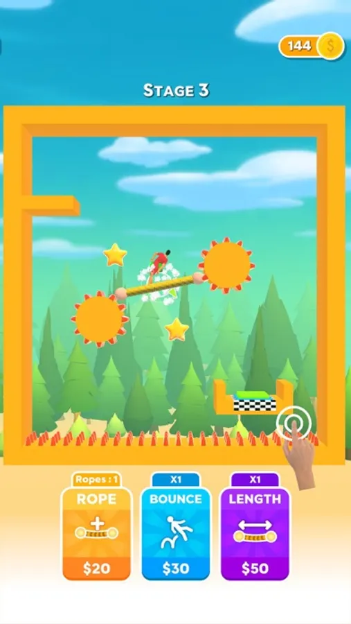 Use your fingers to place the ropes. Place enough ropes to get the character to the finish line and cross your fingers you placed the ropes correctly!