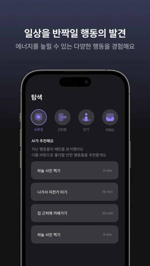 • 행동패턴을 바탕으로 새로운 행동들을 지속적으로 추천해요.