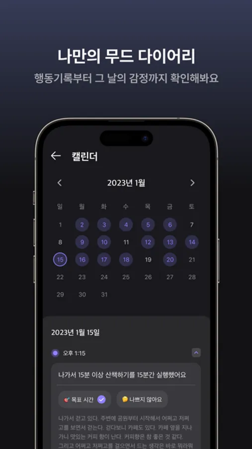 • 행동심리학 전문가가 만든 AI 알고리즘은 나에게 잘 맞는 행동 추천해요.