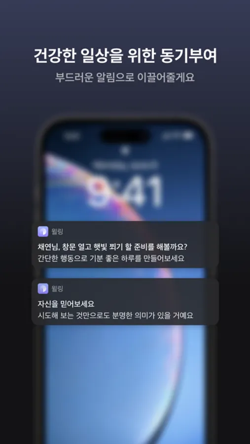 윌링은 기존에 볼 수 없었던 행동심리학 기반으로 감정을 회복을 돕는 웰니스 앱 입니다.