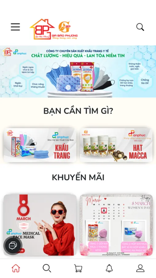 An Phuc GBP application is developed by Gia Bao Phuong Trading and Production Company Limited. With the trend of "Vietnamese people give priority to using Vietnamese goods", thereby contributing to promoting Gia Bao Phuong in manufacturing, investing in professional quality, facilities, applying advanced technology to bring the highest customer satisfaction. We are proud to be one of the leading units in Vietnam specializing in manufacturing and trading " An Phuc 4-layer medical mask for adults, children, KF94-4D, 5D, Crab Mask and nutritional granules Macca An Phuc is safe for all ages.