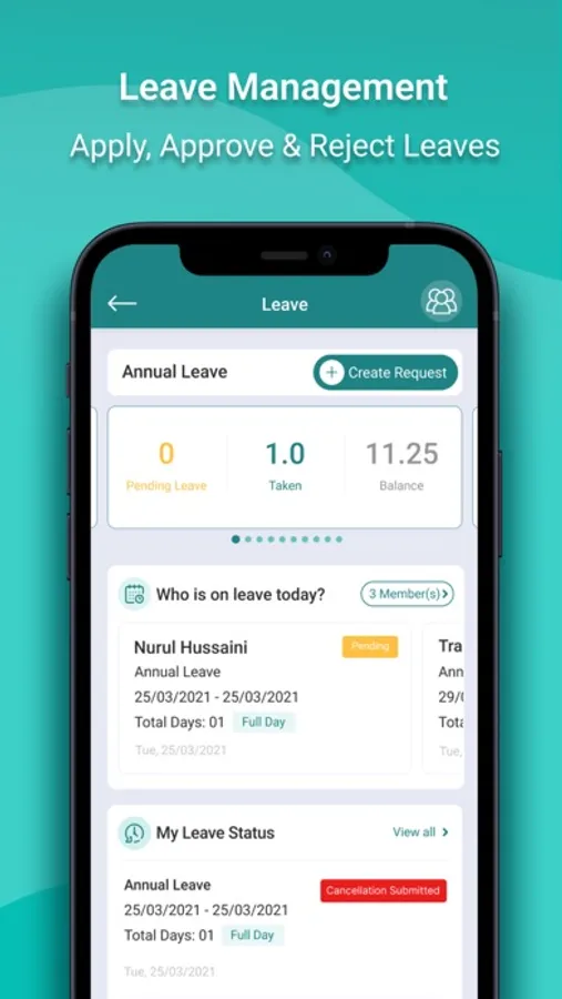 The clock-in and out feature enables users to track their time effortlessly, while leave requests and approvals can be done on-the-go, streamlining the leave management process and eliminating the need for manual paperwork.