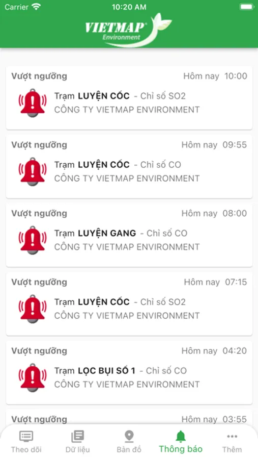 Ngoài ra, ứng dụng này cũng có tính năng cảnh báo, cho phép người dùng được thông báo khi có sự thay đổi đột ngột vượt ngưỡng của môi trường. Và có thể tùy chỉnh, thiết lập các ngưỡng cảnh báo và hiển thị thông tin môi trường theo yêu cầu của họ.