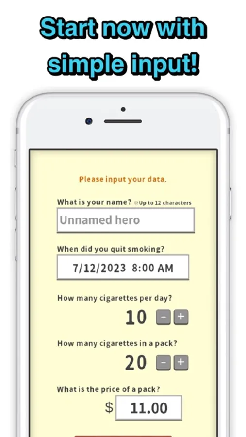 Enter your smoking information to automatically calculate quit time, money saved, and time gained.