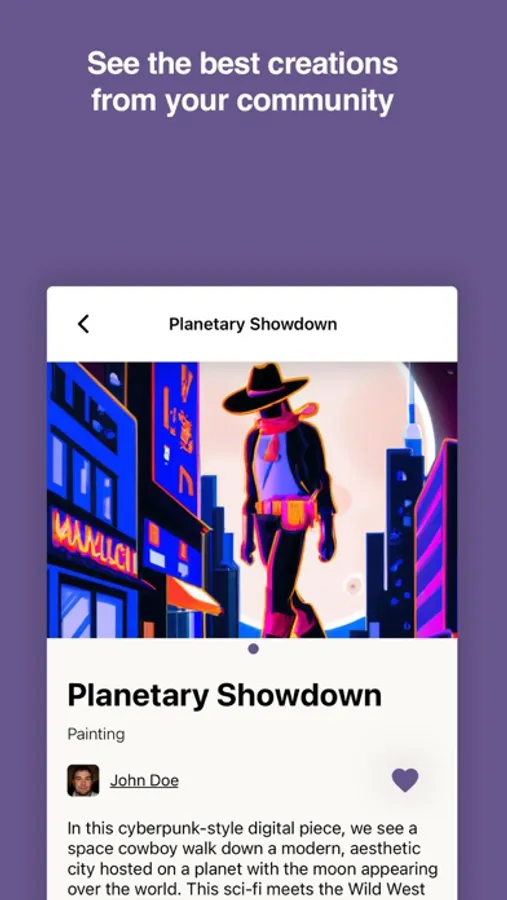 Through a unique drop-based experience, artists will have the opportunity to show off their work once a week. The goal? Provide anyone with a stage to introduce their work to their community. Simply choose your region and explore works created in your community. If you're interested in becoming an artist, it's super easy! Simply sign up as an artist in the app and submit your work.