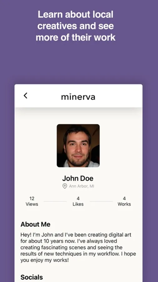 Download the app and sign up today to experience a new, exciting local art-sharing platform.