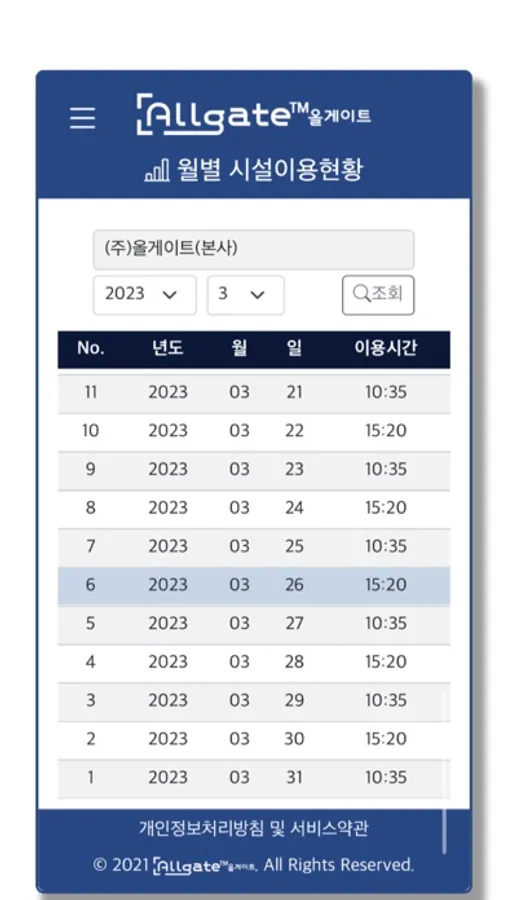 - 출입자/일자/시간대별 출입관리가 편리합니다.