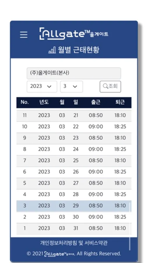 - 출입정보/근태내역을 한눈에 확인할 수 있습니다.