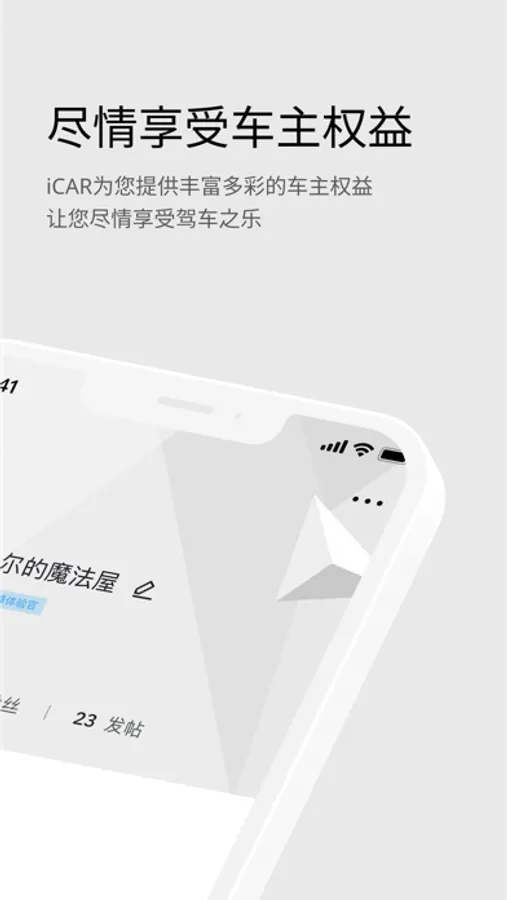 iCAR APP是我们为用户精心打造的智能汽车用户体验平台。不仅可以探索iCAR汽车新鲜资讯、参与iCAR专属活动、享受专属权益,更可以解锁更多车型信息,全面了解iCAR。