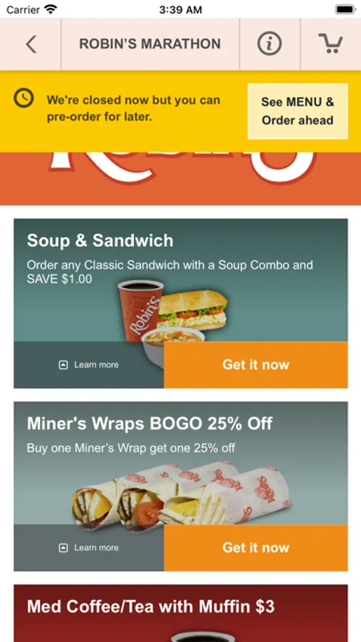 Customize your order and pick up at Robin's in Marathon without having to wait.