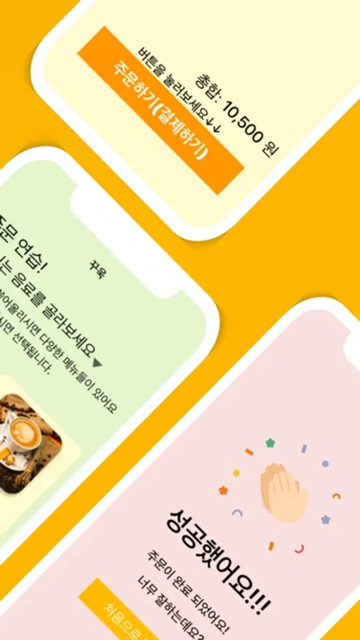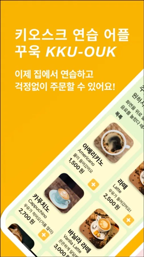 키오스크 연습 어플 “꾸-욱”은 사용자가 재밌는 게임처럼 사용할 수 있도록 음향효과를 넣었습니다. 항상 사용하기 답답했던 키오스크 사용을 재밌게 연습할 수 있습니다.