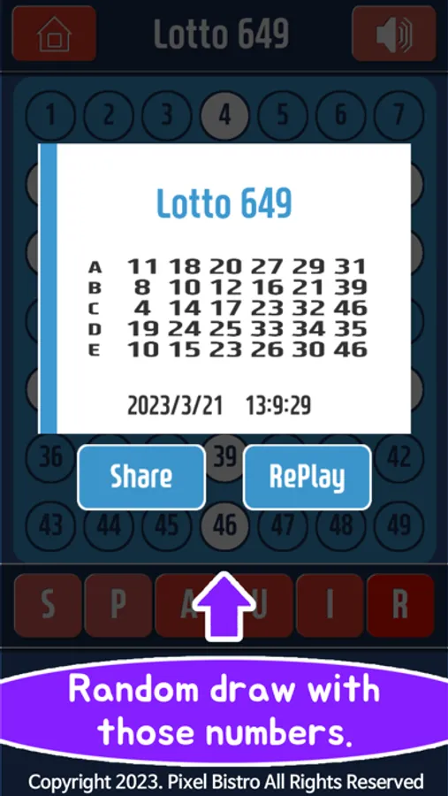 Lotto 6/49 : pick 6 numbers between 1 and 49.
