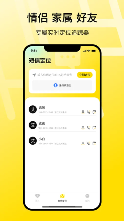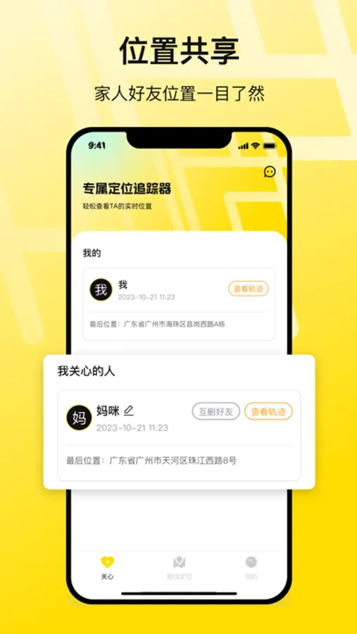 探迹定位是一款可以共享实时定位的手机定位软件。授权添加您关心的人到通讯录,如亲人、爱人、好友,可以定位追踪到TA。遇到紧急情况快速求助,到达TA的位置,时刻守护TA的安全 。