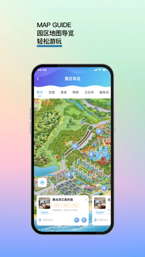 7、官方服务:一键求助功能,高效响应,让您安心玩耍;查询景区开放时间、热门活动,掌握最新资讯。