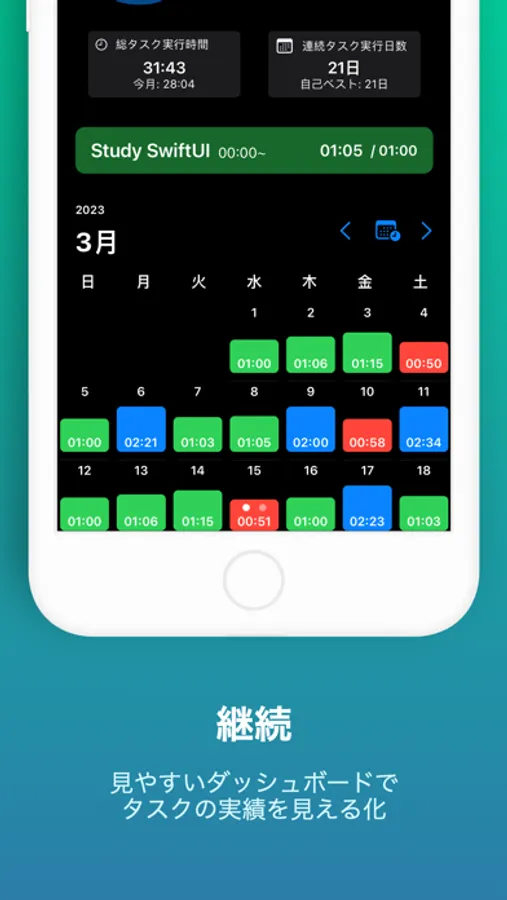 タスクの達成度をダッシュボードで確認できるため、モチベアップ!