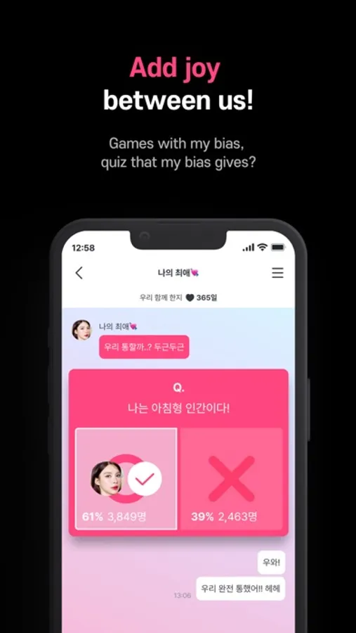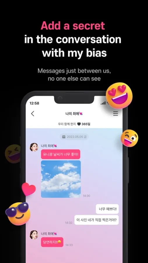 Meet your bias' daily life in a much more diverse way through text, photo, voice and video messages.