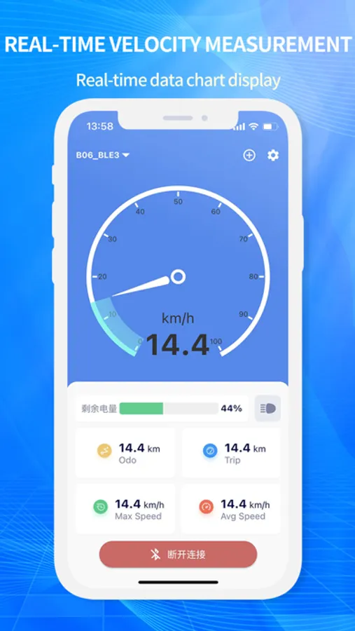 1. Synchronize bicycle riding information through Bluetooth communication and display it on the app's speed dashboard.