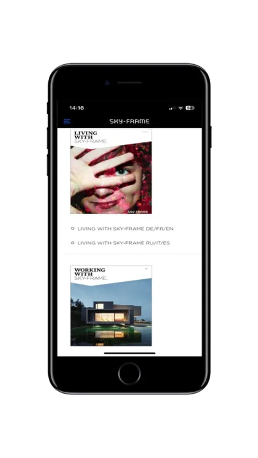 Additional thanks to the Sky-Frame app, our certified Sky-Frame distributors have all the information about our products and the company with them at any time. Whether on the construction site or at a customer appointment - regardless of reception or WLAN, they always have access to product information, references, installation instructions and much more.