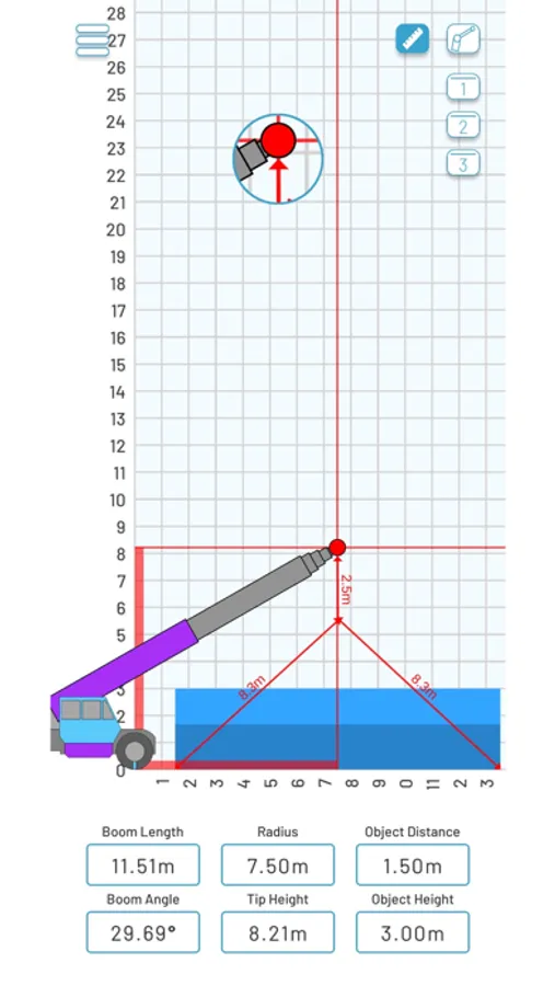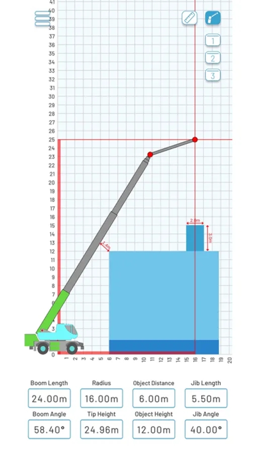 Save your customised cranes and easily access them for later use, streamlining your planning process. Enhance your range charts by adding various object types to simulate different job site environments. With the ruler tool, you can make quick and precise measurements anywhere on your chart, ensuring accurate planning.