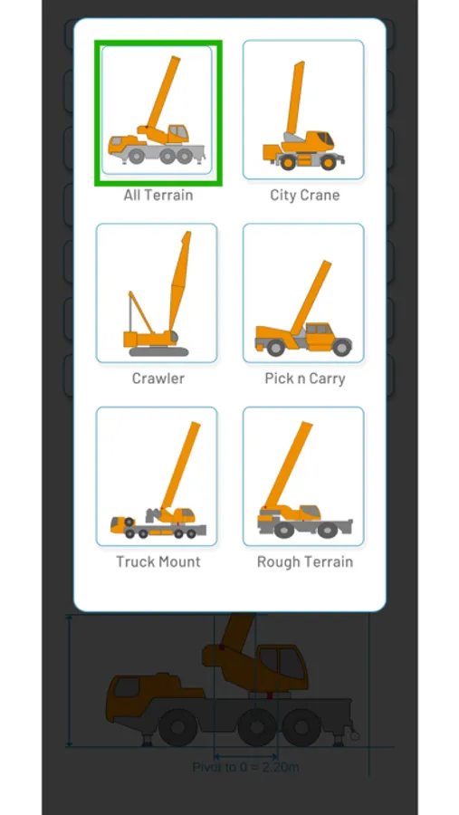 Crangle is the ultimate range chart and planning tool designed specifically for crane operators, dogmen, riggers, and professionals working with cranes. Customise and configure your crane from a selection of six base types, allowing you to match almost any crane type in your fleet.