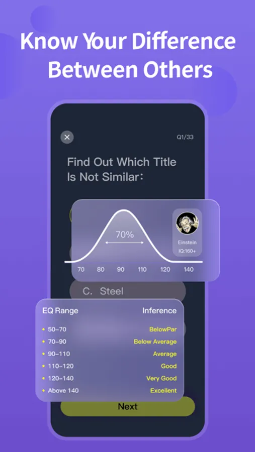 This app not only includes IQ tests, EQ tests, MBTI tests, you can also find many interesting exercises and daily games which are aimed at boosting your cognitive abilities.Games are challenging enough to ensure you progress over time and along with that comprehensible to any age and expertise level.Start your Brainy Games now and compare with your friends!