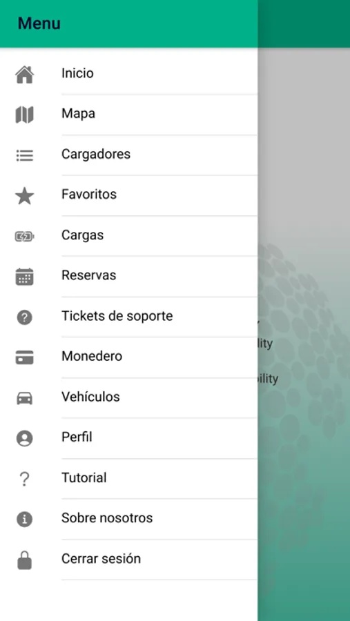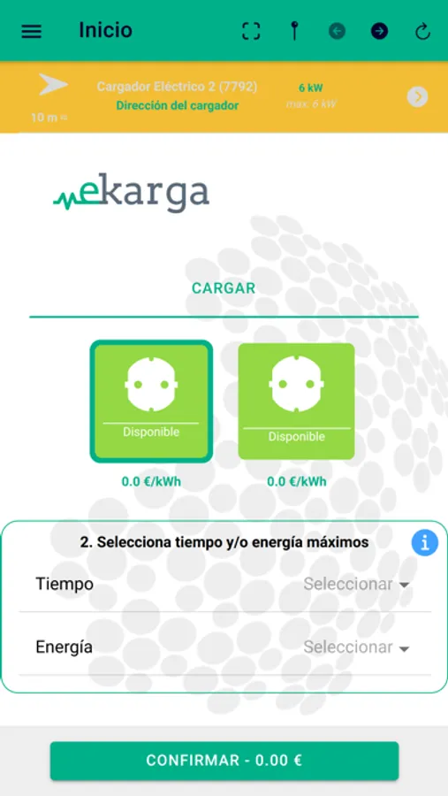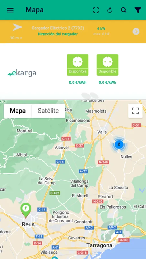 - Mapa: indica la posición en la que se encuentra el usuario y la de los cargadores.