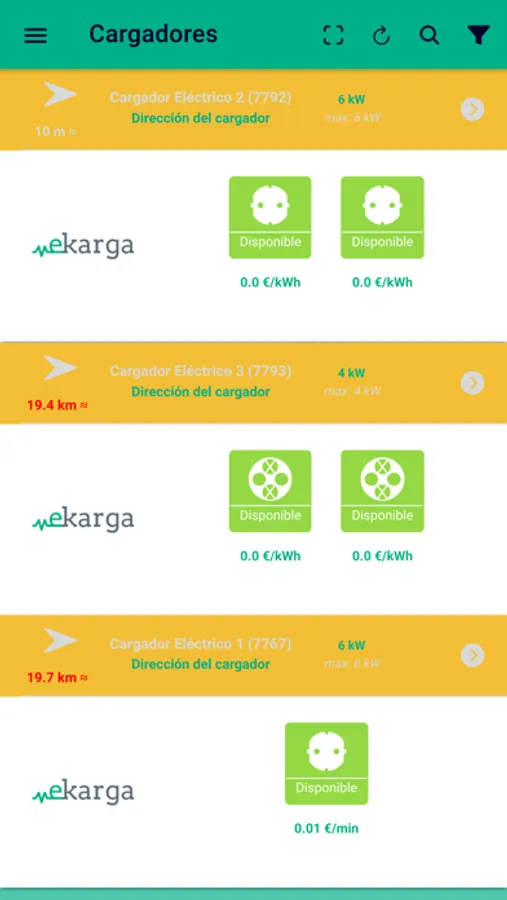 - Lista de cargadores: se muestra la información detallada de cada cargador.
