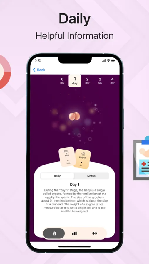Pregnancy tracker is a modern and helpful app that allows you to track pregnancy stages ranging from 0 days to 9 months. Healthy mom means healthy baby growth and this pregnancy tracking app helps hopeful moms stay healthy by monitoring all aspects. Stay accountable with weight tracking and kegel exercise reminders.