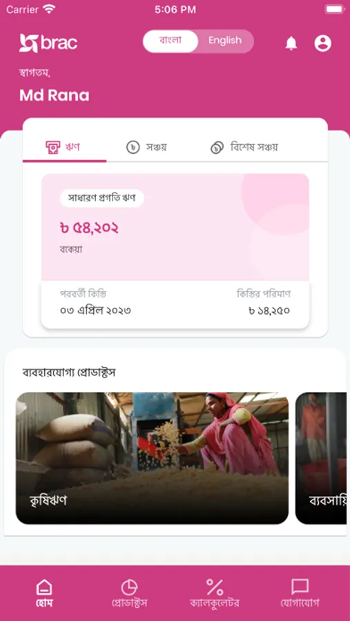 Introducing BRAC ‘Agami’ - the first financial application for registered Progoti clients. Get 24/7 access to your loan and savings information from your iOS devices. It is a free app that you can access if you are a registered BRAC Progoti client and avail our various services at your fingertips from anywhere at any time. Log in using your registered mobile number and birth year which you had previously used during BRAC Microfinance Progoti registration.