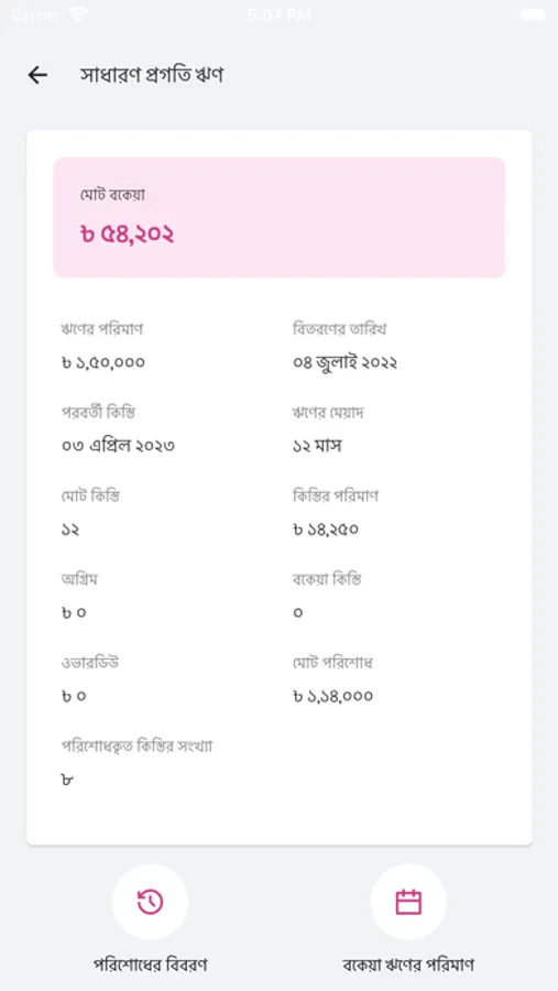 You can now access information of all your active loans and savings information from anywhere at any time right after login. You can also access detailed information and check your outstanding along with the due date.
